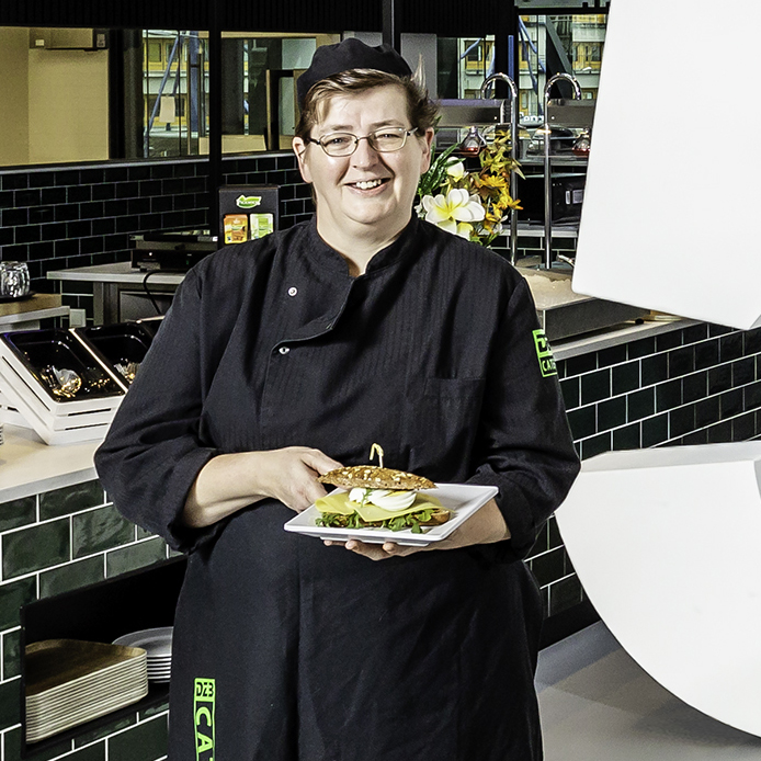 “Ik blij dat ik het heb gedaan, want daardoor heb ik de stap kunnen zetten naar senior medewerker niveau 4. Ik ben er best trots op dat ik nu een team van vier medewerkers aanstuur en dat we in normale tijd ongeveer honderd gasten per dag bedienen. Binnen de richtlijnen van DZB Catering is er ruimte voor onze eigen inbreng. Heerlijk om met het team onze fantasie te gebruiken. Zo hebben we onlangs tijdens een vegetarische dag broccolisoep gemaakt naar een eigen recept van een van onze medewerkers. Ik kan nu ook zelf collega’s begeleiden bij het gebruik van Brede Basis. Vanuit een positieve benadering kijken we of ze nieuwe stappen kunnen zetten. Op die manier draag ik mijn steentje bij aan het ontwikkelen van onze medewerkers.”