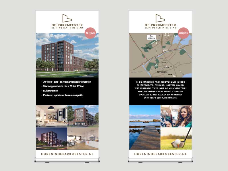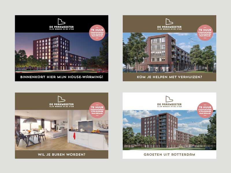 In het mooie Rotterdam werd in de nieuwe wijk Park 16Hoven het nieuwbouwproject De Parkmeester gerealiseerd. Een appartementencomplex met in totaal 77 appartementen voor de verhuur. Voor Concepten &zo ontwikkelde ik het logo, de huisstijl en alle communicatie voor dit vastgoedproject. Binnen enkele weken waren alle appartementen verhuurd.