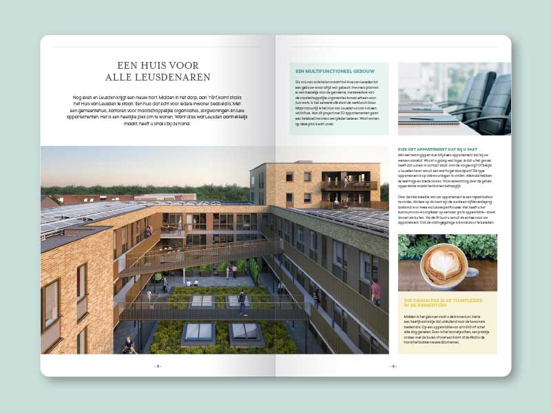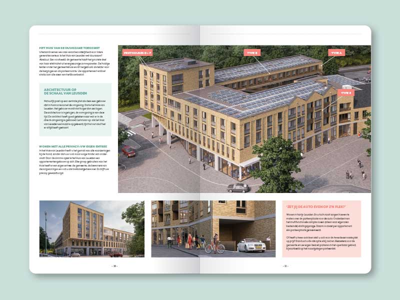 Huis van Leusden is een multifunctioneel gebouw met een gemeentehuis, kantoren voor maatschappelijke organisaties, zorgwoningen én luxe koopappartementen. Ik heb de vastgoedcommunicatie voor dit nieuwbouwproject ontwikkeld, de huisstijl, brochure, bouwbord, advertenties en de visuele content voor de website en de Facebookpagina.
