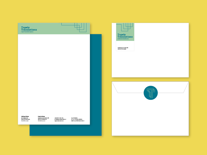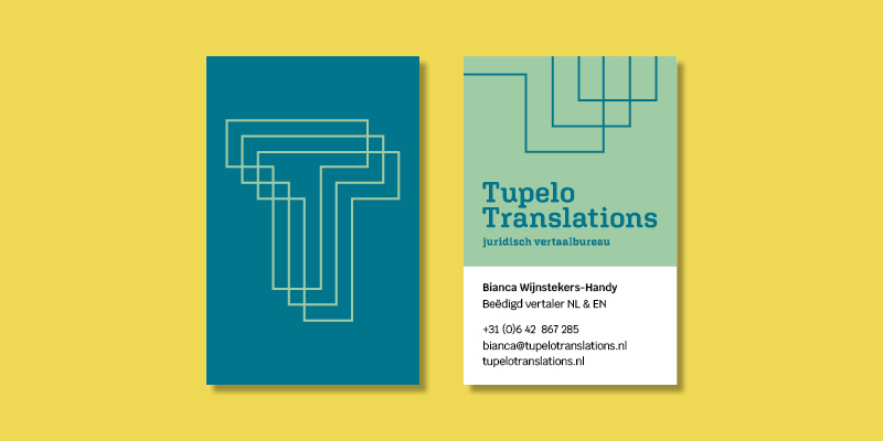Voor Tupelo Translations heb ik geen enveloppen laten drukken, maar hebben we gebruik gemaakt van stickers. Verder heeft dit vertaalbureau een digitaal briefpapier in Word en uiteraard nette visitekaartjes.