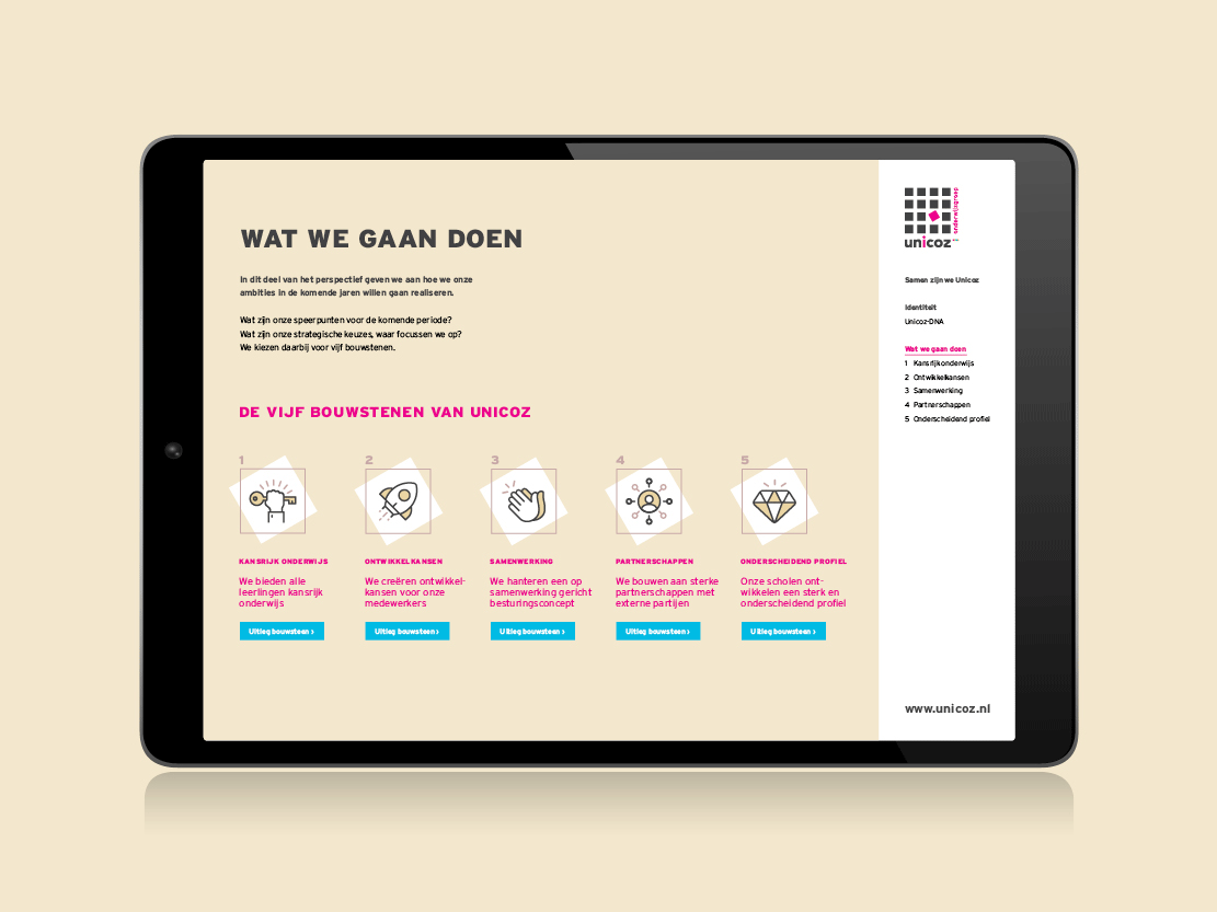 Onder de hashtag #SamenzijnweUnicoz is alle communicatie, rondom de nieuwe strategie en de onderwijsdag, online verder uitgerold door Unicoz zelf.